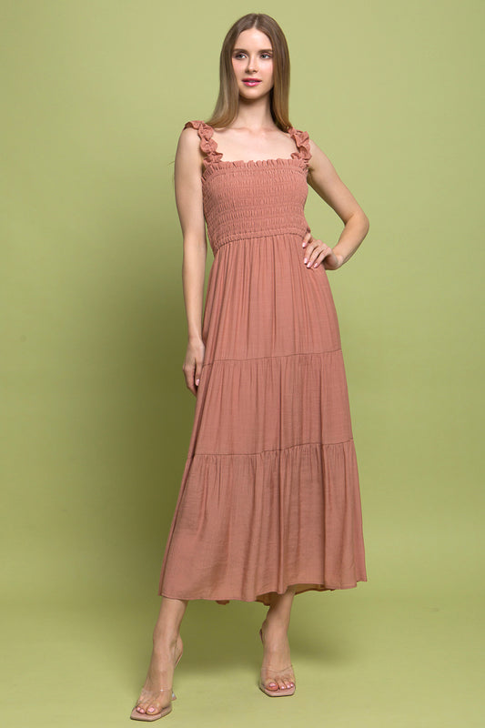 Dot Woven Fabric Smocking Waist Tiered Skirt