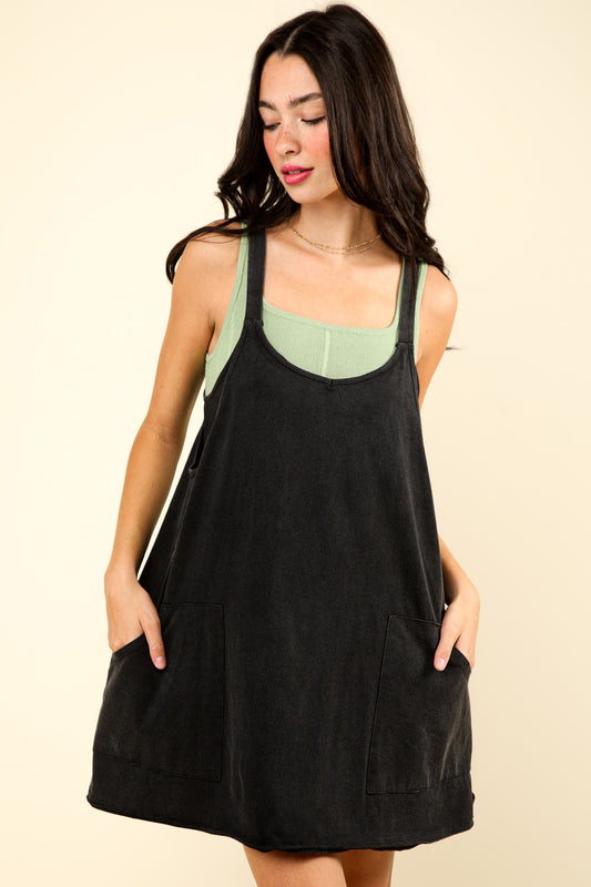 D8070VJ Deep V-neck Comfy Knit Mini Dress W/ Shorts Inside
