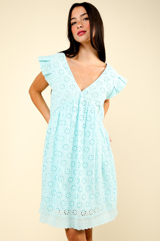 D8071VJ A-Line Flare Eyelet Cotton Mini Dress