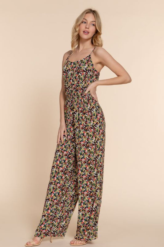 SaleR8011AB FLORAL PRINT WOVEN CAMI JUMPSUIT