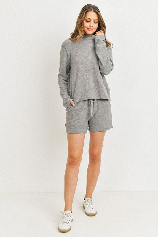 SaleTextured Knit Fabric Turtle Neck Long Sleeve Top