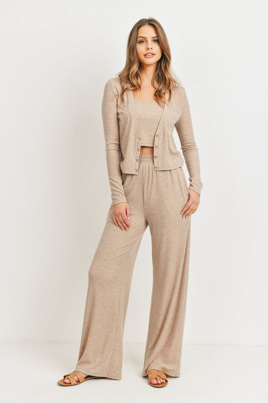 SaleRib Crop Tank with Button Front Long Sleeve Cardigan Set