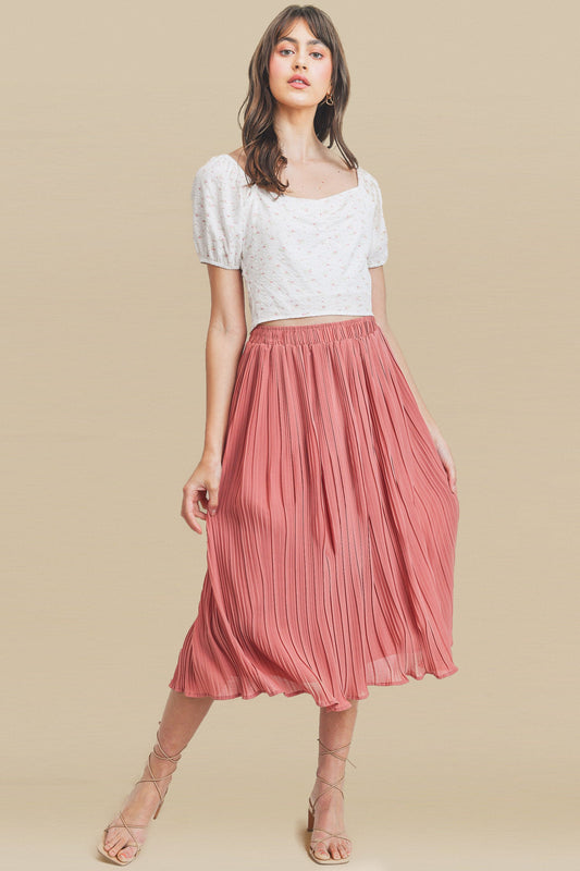 Elastic Waist Pleated Skirt