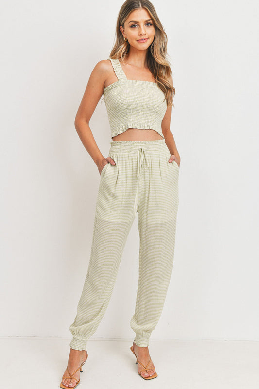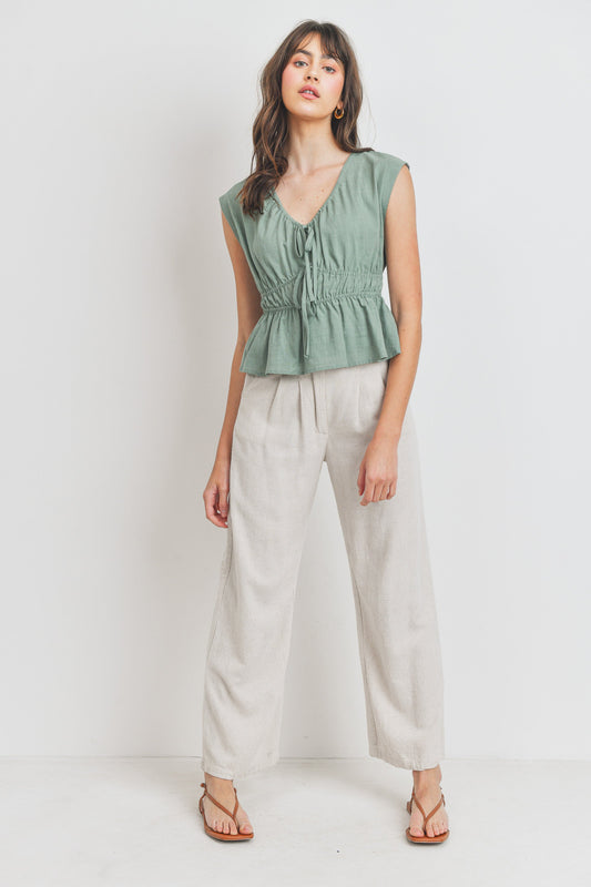 SaleDot Woven Fabric Ruffle Sleeve Detail Self Tie Front Sleeveless Top